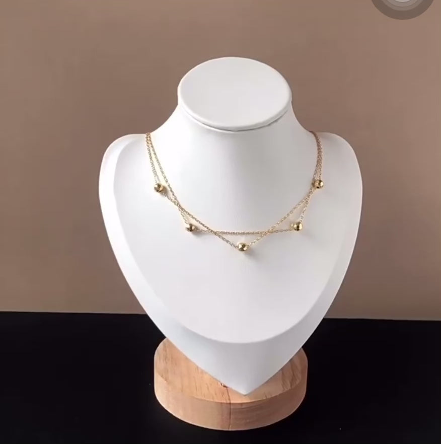 A layered necklace with a multi-faceted cut ball motif design.