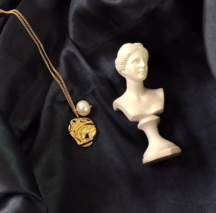 A delicate and elegant necklace with a combination of plate design and freshwater pearls.